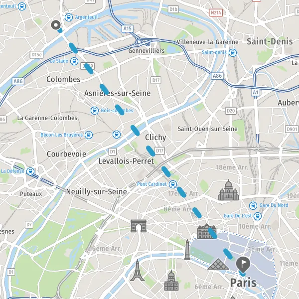 Ne perdez plus votre temps à chercher un billet de train pas cher, Mappy vous permet de comparer tous les prix et tous les horaires pour réserver votre train de Argenteuil à Paris avec nos partenaires : SNCF, Ouigo. Comparez votre trajet Argenteuil Paris en train, entre différentes lignes ou avec les autres modes de transports, et calculez ainsi l'économie de temps et de coût réalisée.