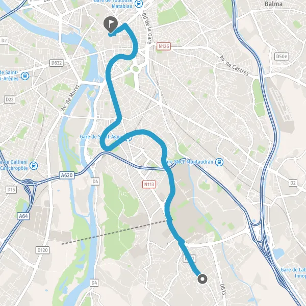 | Distance en transports en commun | 10,4 km à 10,9 km |