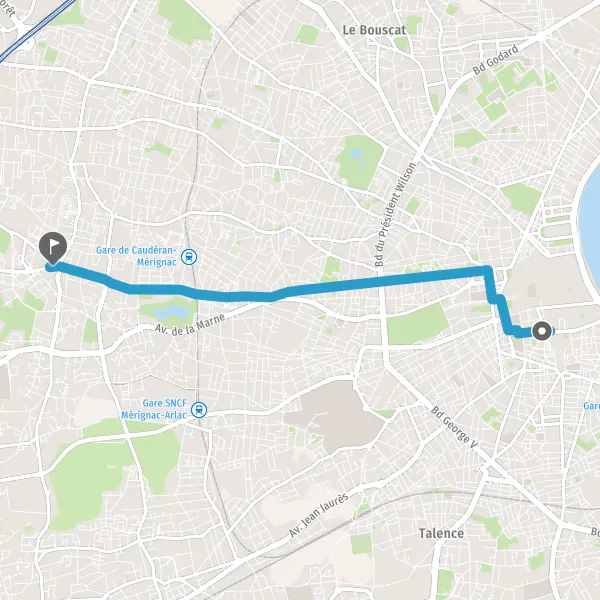 | Distance en transports en commun | 8,4 km à 8,5 km |