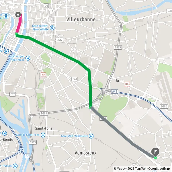 | Distance en transports en commun | 12,3 km à 15,1 km |