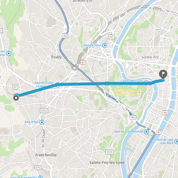 | Distance en transports en commun | 6,2 km à 8,6 km |