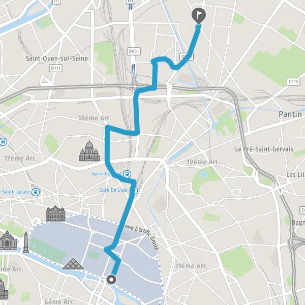 | Distance en transports en commun | 7,4 km à 9,6 km |