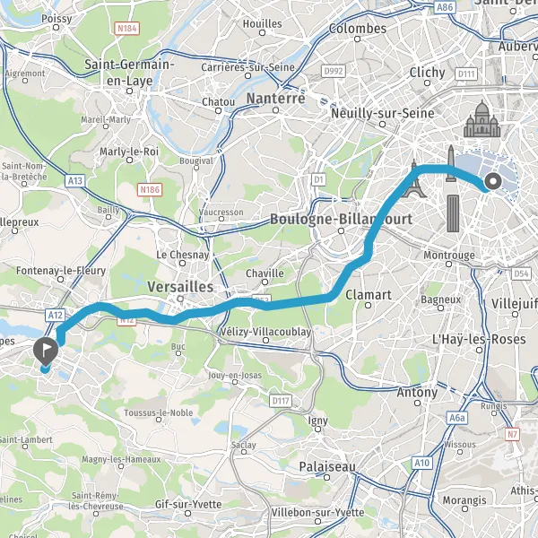 | Distance en transports en commun | 26,5 km à 30,0 km |