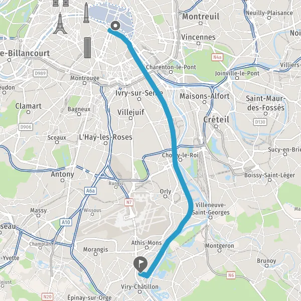 | Distance en transports en commun | 19,4 km à 20,2 km |
