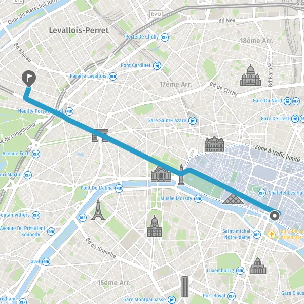 | Distance en transports en commun | 6,8 km à 8,7 km |
