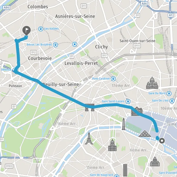 | Distance en transports en commun | 10,8 km à 12,1 km |