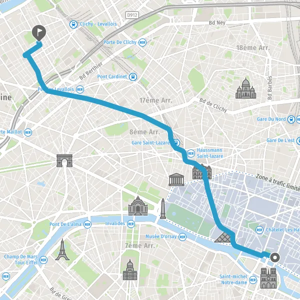 | Distance en transports en commun | 6,5 km à 8,2 km |
