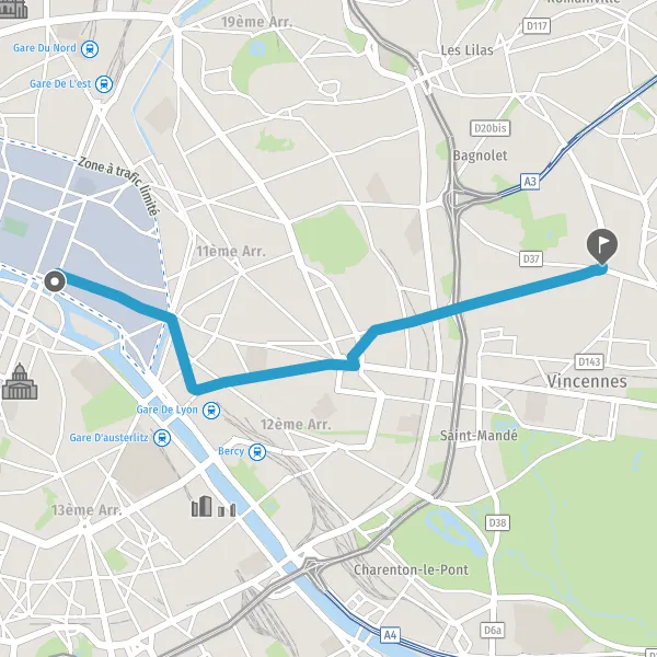 | Distance en transports en commun | 6,8 km à 8,7 km |