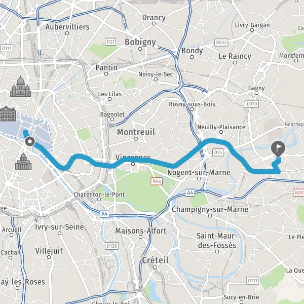 | Distance en transports en commun | 15,7 km à 19,9 km |