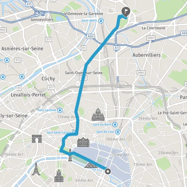 | Distance en transports en commun | 10,1 km à 10,6 km |