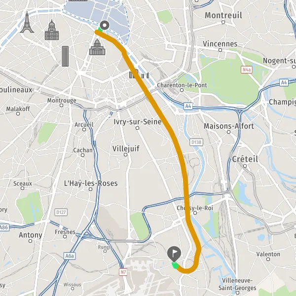 | Distance en transports en commun | 13,9 km à 14,2 km |