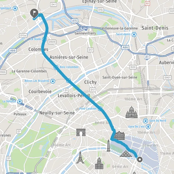 | Distance en transports en commun | 12,6 km à 13,8 km |