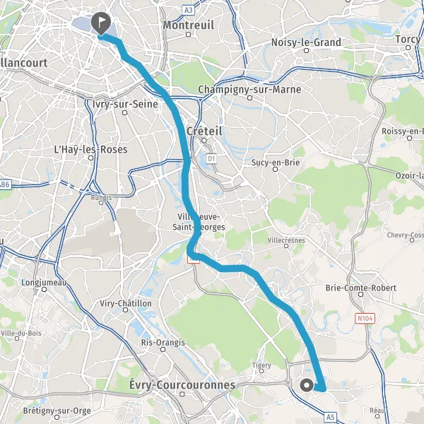 | Distance en transports en commun | 31,6 km à 32,1 km |