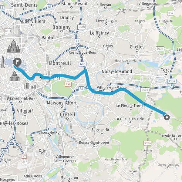 | Distance en transports en commun | 25,4 km à 28,8 km |