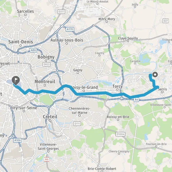 | Distance en transports en commun | 31,4 km à 32,0 km |
