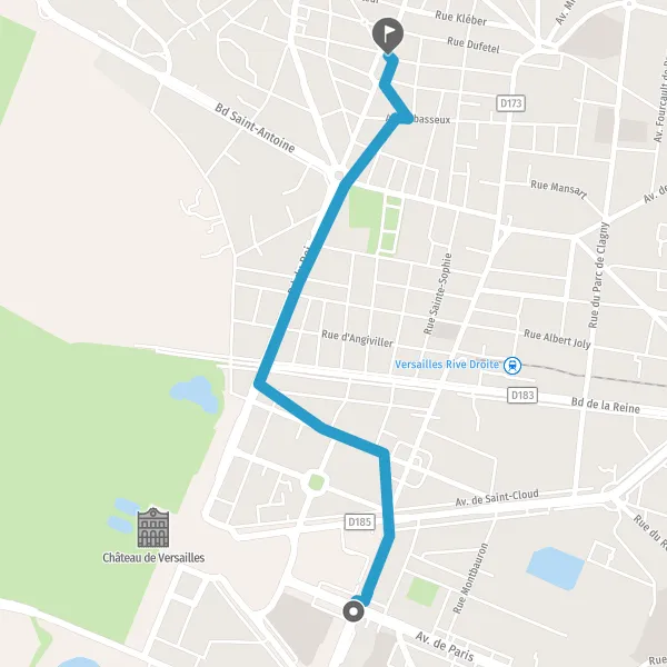 | Distance en transports en commun | 2,1 km à 2,3 km |