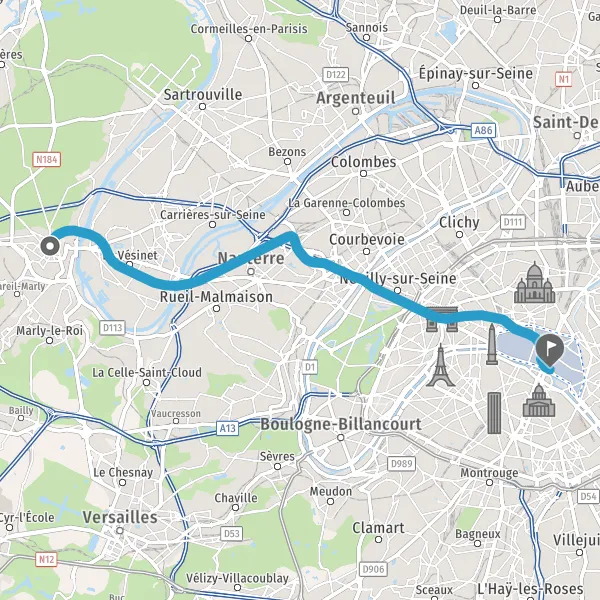 | Distance en transports en commun | 19,7 km à 19,9 km |