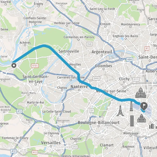 | Distance en transports en commun | 24,9 km à 25,0 km |