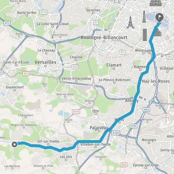 | Distance en transports en commun | 26,6 km à 26,9 km |