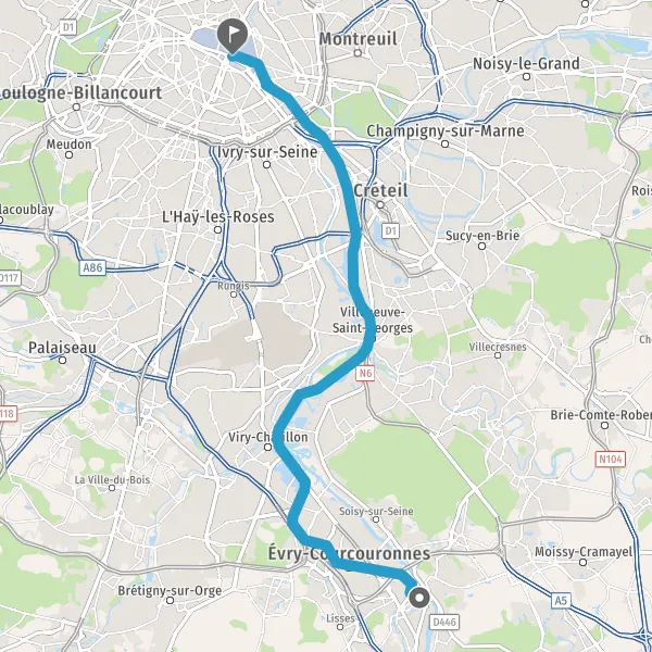 | Distance en transports en commun | 29,7 km à 30,4 km |