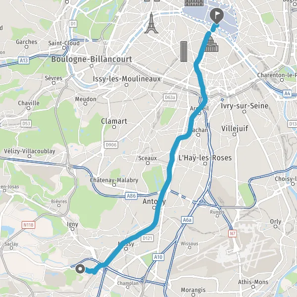 | Distance en transports en commun | 18,1 km à 18,7 km |