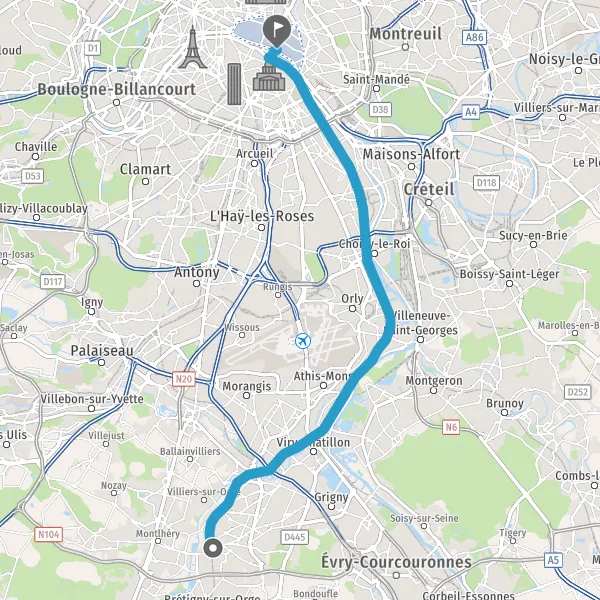 | Distance en transports en commun | 25,0 km à 28,3 km |