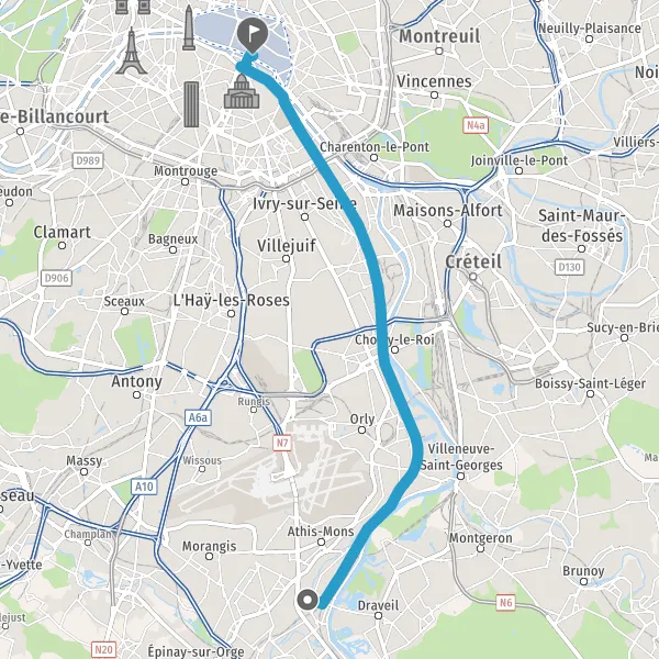 | Distance en transports en commun | 19,4 km à 20,5 km |