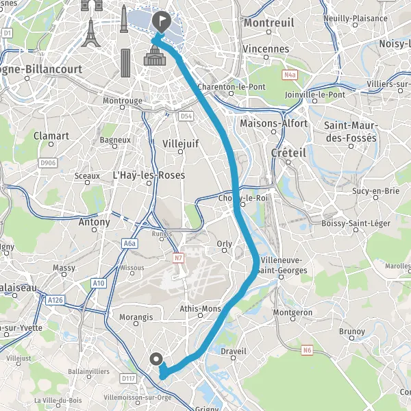 | Distance en transports en commun | 22,6 km à 25,9 km |