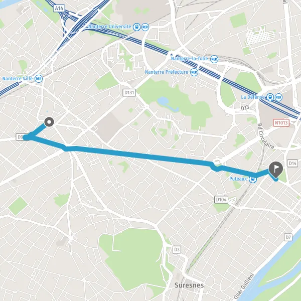 | Distance en transports en commun | 3,3 km à 3,7 km |