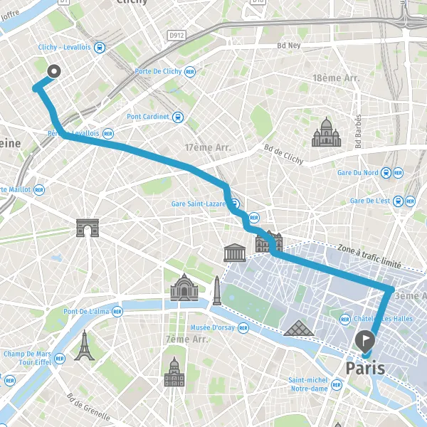 | Distance en transports en commun | 6,7 km à 7,6 km |
