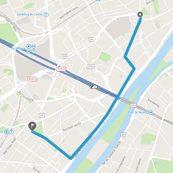 | Distance en transports en commun | 2,5 km à 2,8 km |