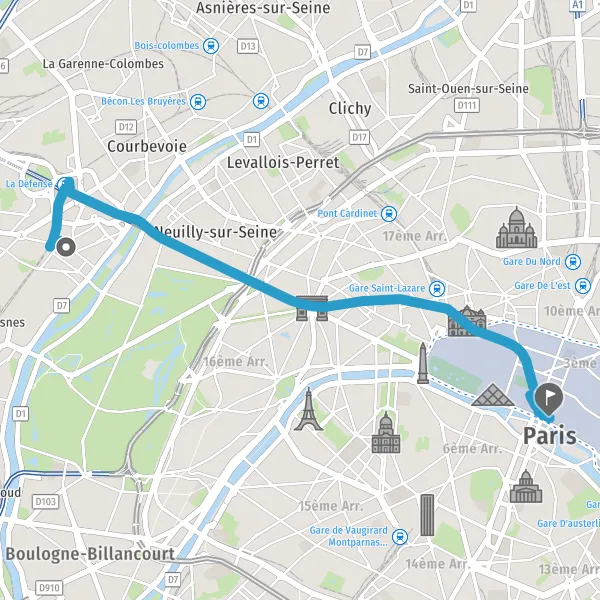 | Distance en transports en commun | 10,4 km à 10,8 km |