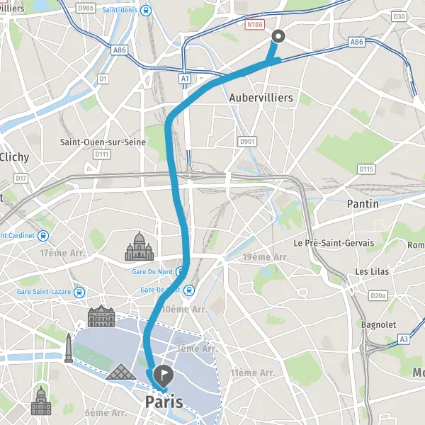 | Distance en transports en commun | 8,9 km à 10,2 km |