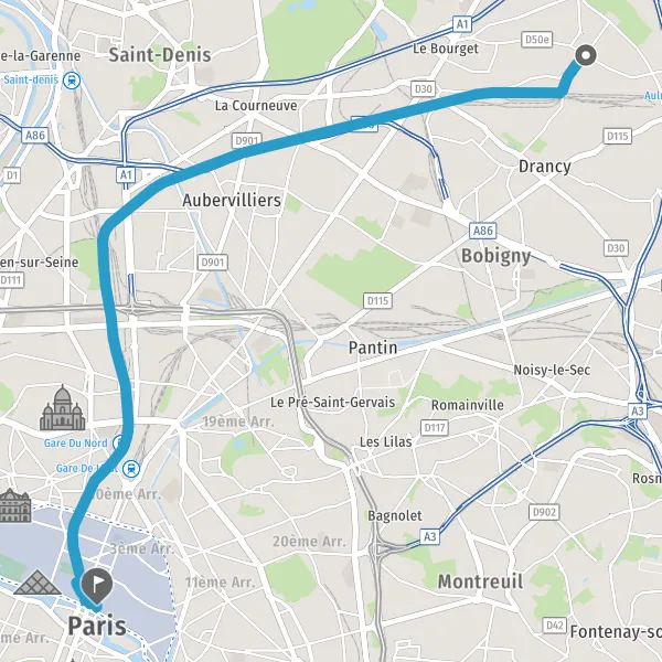 | Distance en transports en commun | 12,5 km à 13,6 km |