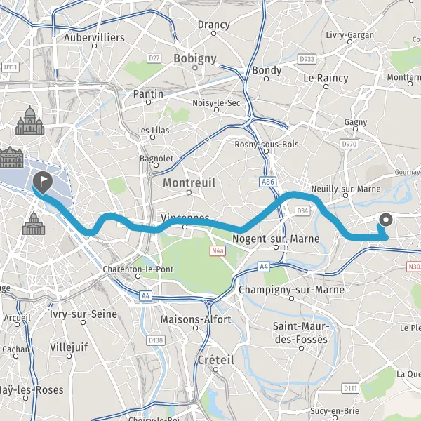 | Distance en transports en commun | 15,3 km à 17,4 km |