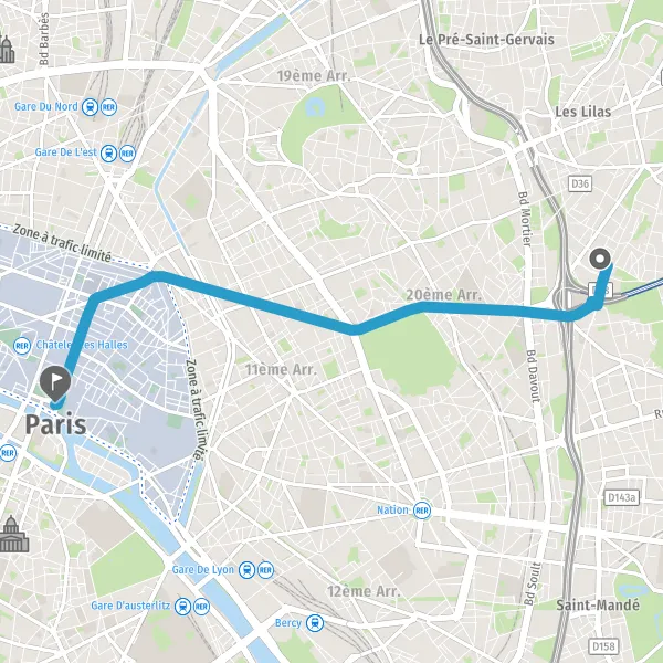 | Distance en transports en commun | 5,2 km à 6,1 km |