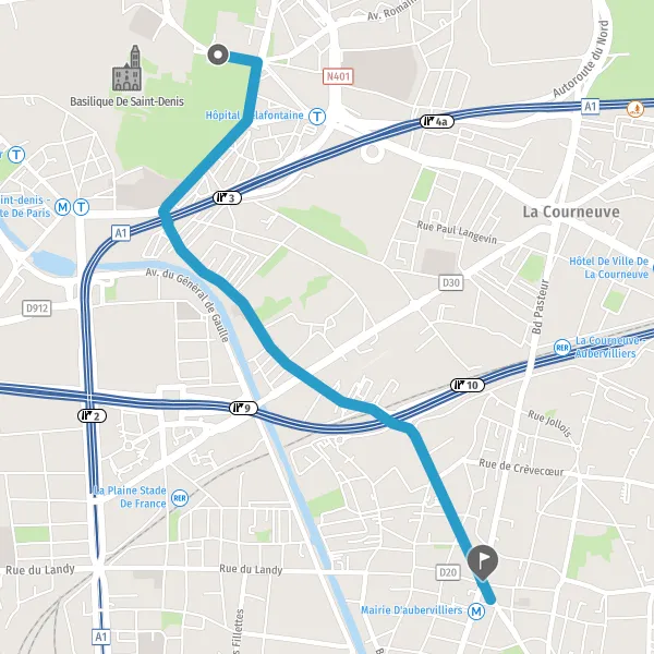 | Distance en transports en commun | 3,3 km à 3,8 km |