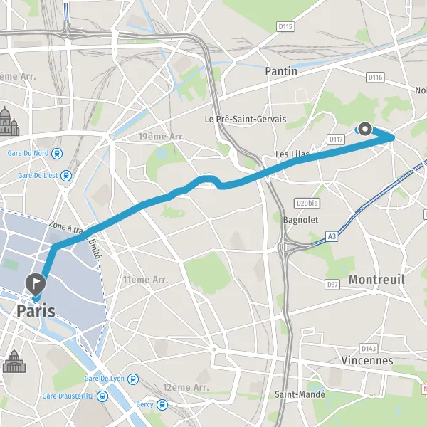 | Distance en transports en commun | 7,6 km à 8,0 km |
