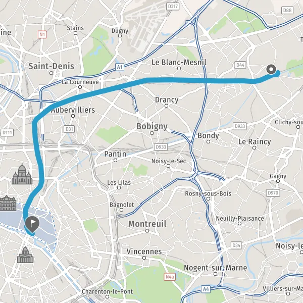 | Distance en transports en commun | 17,3 km à 20,2 km |
