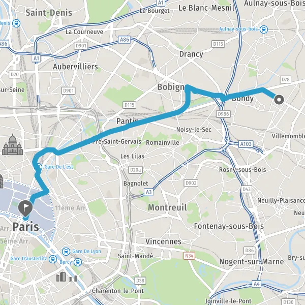 | Distance en transports en commun | 12,6 km à 16,5 km |