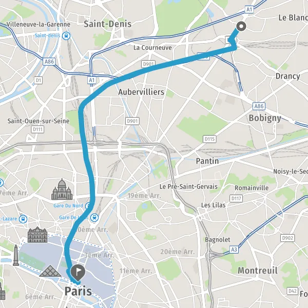 | Distance en transports en commun | 11,3 km à 12,7 km |