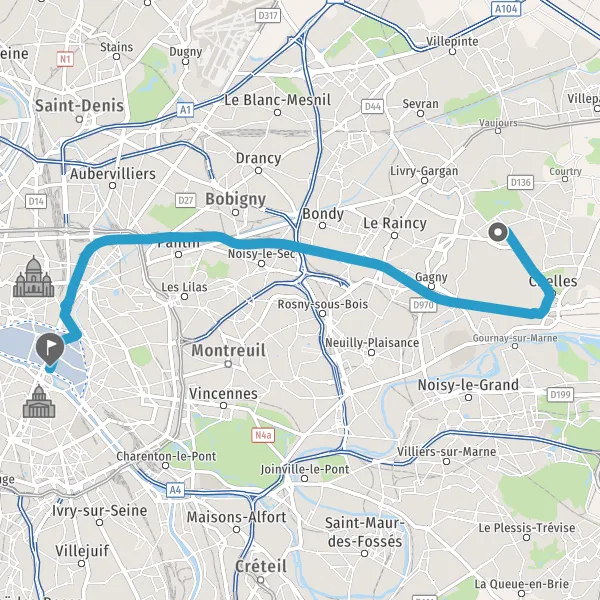 | Distance en transports en commun | 22,1 km à 22,5 km |