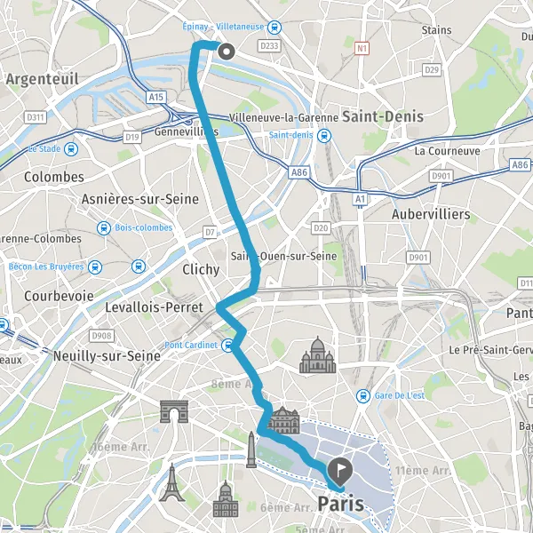 | Distance en transports en commun | 12,1 km à 14,4 km |