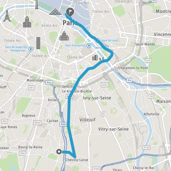 | Distance en transports en commun | 10,5 km à 10,9 km |
