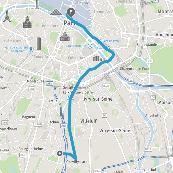| Distance en transports en commun | 10,6 km à 10,9 km |