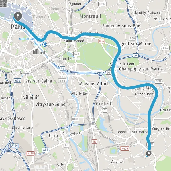 | Distance en transports en commun | 16,7 km à 17,6 km |