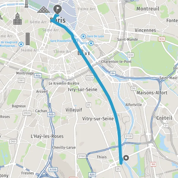 | Distance en transports en commun | 12,1 km à 14,3 km |