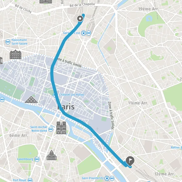 | Distance en transports en commun | 4,7 km à 5,5 km |