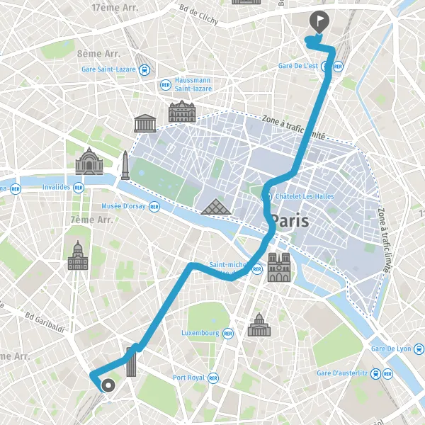 | Distance en transports en commun | 5,6 km à 6,3 km |