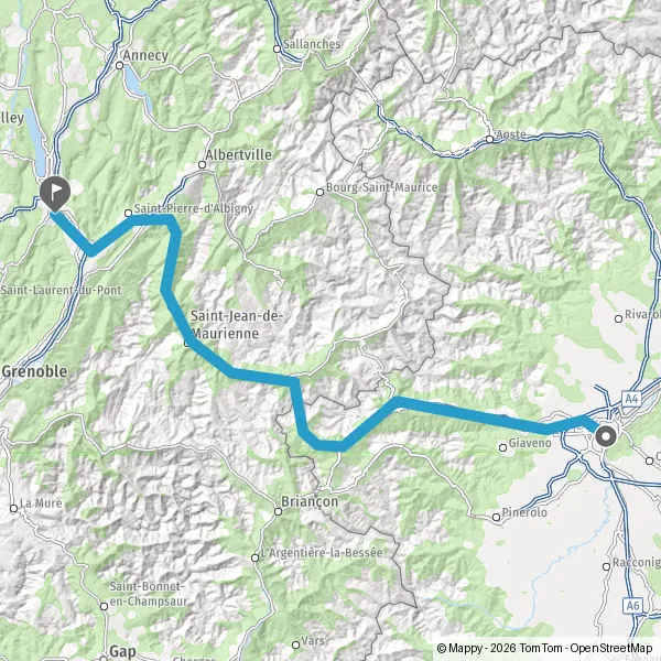 Prendre à droite et rejoindre A43. Continuer sur 7,8 kilomètres